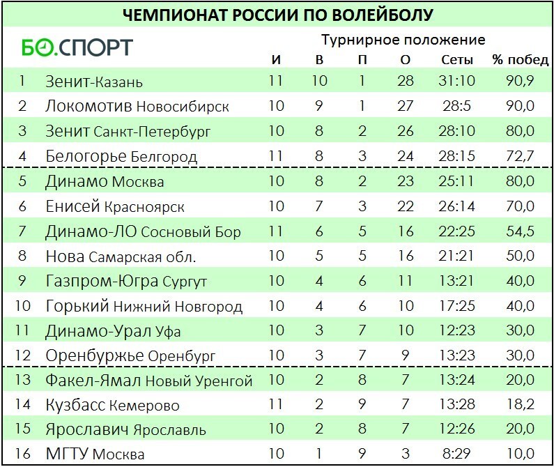 Зенит СПб – Динамо-ЛО – 3:0 (25:19, 25:20, 25:17)