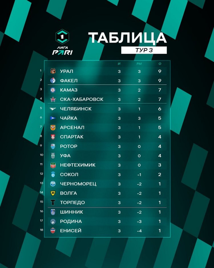 В первенстве Первой лиги завершился 3-й тур, в котором не обошлось без сюрпризов. Например, «Торпедо» проиграло хабаровскому СКА, а КАМАЗ победил «Челябинск». Но была и стабильность: «Урал» переиграл «Родину», а «Факел» оказался сильнее «Сокола».