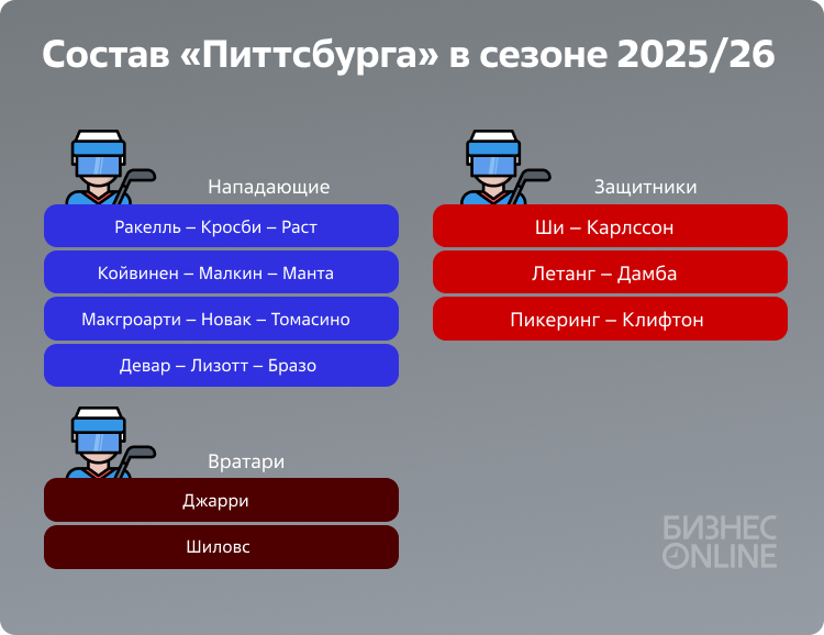 Команда перестала показывать прежние результаты и начала регрессировать. Если в позапрошлом сезоне она отстала от зоны плей-офф на три очка, то в прошлом – уже на 11, заняв 13-е место в Восточной конференции. Велик соблазн обвинить во всех проблемах 38-летних Кросби и Криса Летанга, вместе с 39-летним Малкиным. Контракты троих ветеранов занимают в платёжной ведомости более 20 млн долларов. А ведь под потолком зарплат «Питтсбурга» свободны ещё 13 миллионов. Только у пяти клубов НХЛ больше пространства, а это значит, что возможности усилиться и подровнять состав были.