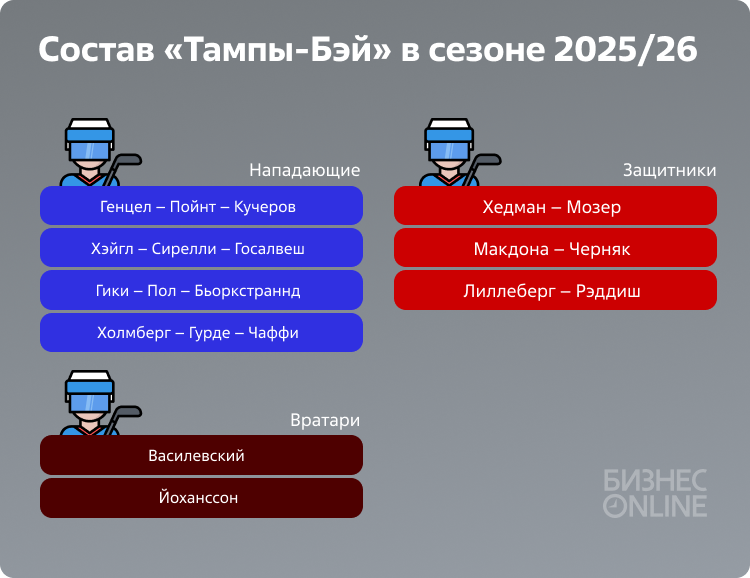 Расставание прошло болезненно для обоих, но Никита с честью принял тот факт, что градус ответственности поднялся ещё выше. Он улучшил свои показатели по победным голам (с 6 до 9) и занял четвёртое место в НХЛ по этому показателю. В гонке за «Арт Росс» 2026 года Кучеров считается фаворитом наравне с Нэтаном Маккинноном, отставшим от него на пять очков в прошлом турнире. В том, что россиянин вновь будет неудержим в регулярном чемпионате, сомнений нет. Но хватит ли у «Тампа-Бэй» глубины состава, чтобы дать возможность лидеру показать себя в плей-офф? Уже три года барьер первого раунда остаётся непроходимым. В прошедшем розыгрыше Кубке Стэнли россиянин не забивал ни разу в пяти матчах, при плотной опеке лидера остальные звенья практически бессильны. Руководство пытается добавить составу глубины.