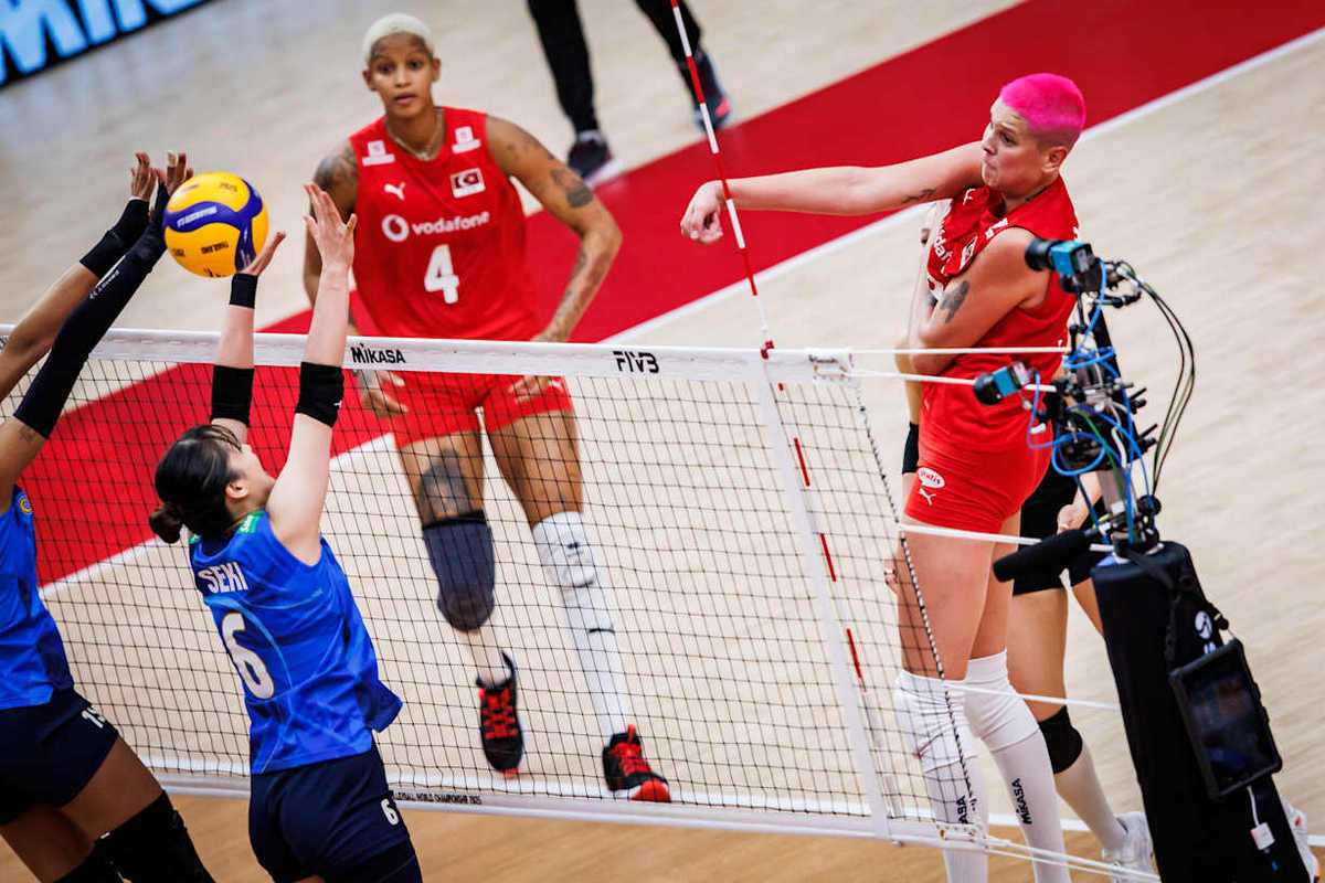 Начало полуфинала с Японией получилось для турчанок обескураживающим. Они атаковали поверх блока, но ничего не могли забить – азиатская команда прекрасно защищалась и отвечала молниеносными контратаками. Например, доигровщица турчанок Эбрар Каракурт в стартовом сете не набрала ни одного очка в пяти атаках. Её розовые волосы были намного ярче, чем её игра. Кроме того, игроки сборной Турции плыли в приёме.