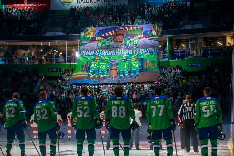 Посетил первую домашнюю игру глава Башкортостана Хабиров, что особенно важно: без помощи республики «Салавату» не выйти из тяжёлой экономической ситуации. Также на матче присутствовал министр спорта РБ Руслан Хабибов, он приехал не просто поболеть, а для торжественной церемонии в перерыве, где игроков женской хоккейной команды «Агидель» поздравляли с чемпионством ЖХЛ минувшего сезона.