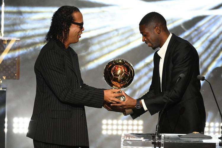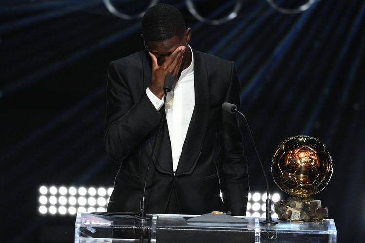 И вот свершилось: обладателем «Золотого мяча» объявили Дембеле. Выйдя на сцену, Усман нервничал даже больше, чем при исполнении пенальти в важном матче. Левая рука неожиданно оказалась в карман, а правой  ладонью он вытирал струящийся по лбу пот. «Я немного переживаю. Так много произошло по ходу моей карьеры…Этот трофей, который мне вручил Роналдиньо,  воплощает всё, чего я добился за свою карьеру. Эту награду получаю я, но это совместные усилия нашей команды», – сказал Дембеле.