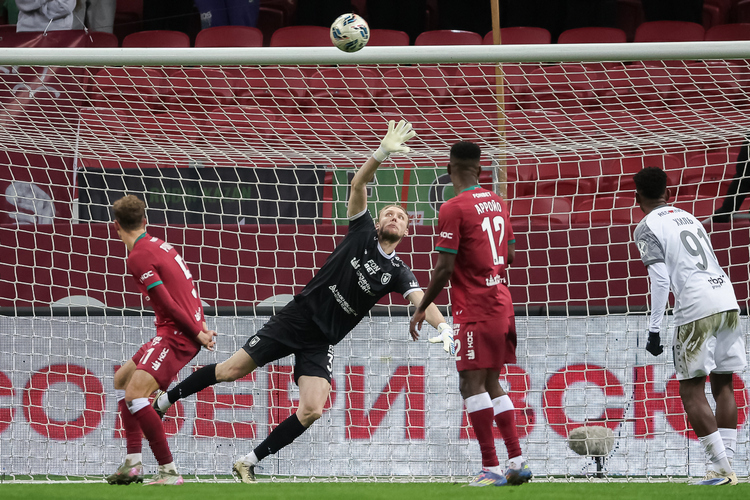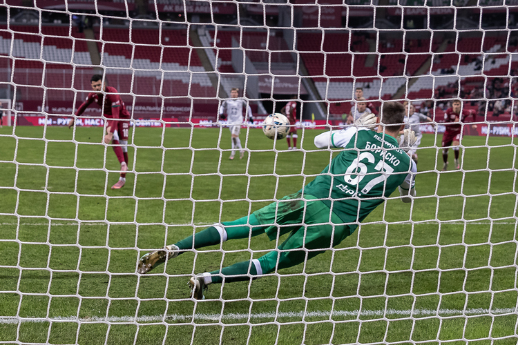 На 52-й минуте судья назначил пенальти в ворота гостей. Мирлинд Даку наконец нашёл свободное пространство, убежал от Кевина Андраде и тот решился на последний спасительный шанс: грубый толчок соперника в спину. Пенальти. Пострадавший взял мяч, поставил на точку и пробил просто на силу ближе к центру ворот – Максим Бориско с направлением угадал и удар отбил. Даку пополнил статистику промахов – уже четвёртый незабитый пенальти.