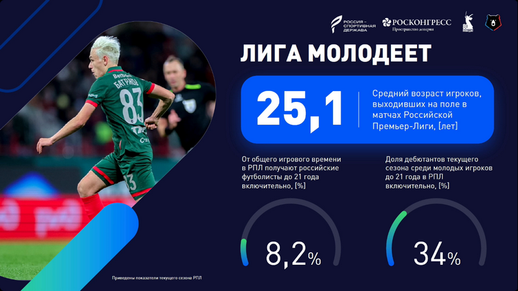 Про тему лимита, которая имеет сейчас определенное напряжение, Алаев умолчал. Лишь отметил, что игровое время молодых игроков в премьер-лиге растёт. Сейчас средний возраст составляет 25,1 год. Президент отметил, что по среднему возрасту моложе только в Нидерландах, Франции и Дании. Однако в дальнейшем не рассказывается, как лига будет стимулировать выход ещё большего числа молодых на поле.
