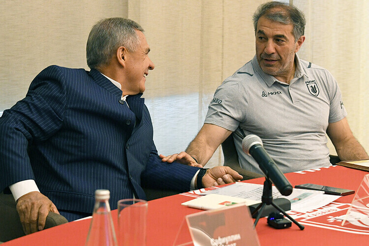 «Ко мне в руководстве в оппозиции было два-три человека. Просто было пожелание не мешать спортивному блоку. Если бы я выбрал путь, который эти люди предлагали, – меня бы уволили через два-три месяца. Поэтому я был готов взять ответственность на себя. Об этом говорил и Рустаму Нургалиевичу. Для меня не проблема взять ответственность, но мне нужна помощь. И я очень ему благодарен. Рустам Нургалиевич был доволен результатами и сказал, что я взял команду в тяжёлый период (...) Татарстан – такой регион, где нельзя делать провалов. Даже чемпионский «Рубин»: стал чемпионом, а потом откатился. К стабильности нужно подводить, чтобы не выпадать».