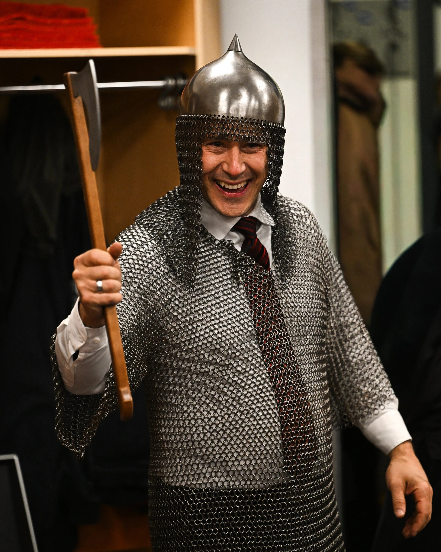 Однако капитан омичей Дамир Шарипзянов настоял, чтобы Буше надел кольчугу, шлем и взял топор – атрибуты образа покорителя Сибири, вдохновленного исторической фигурой Ермака.