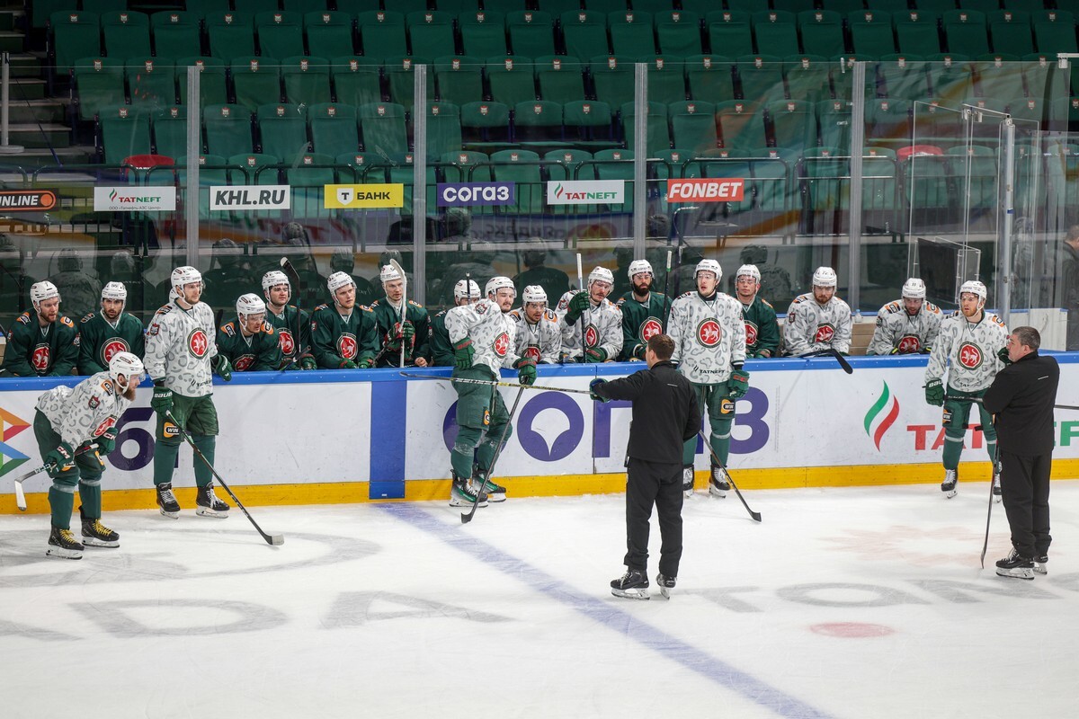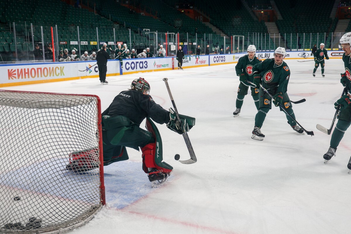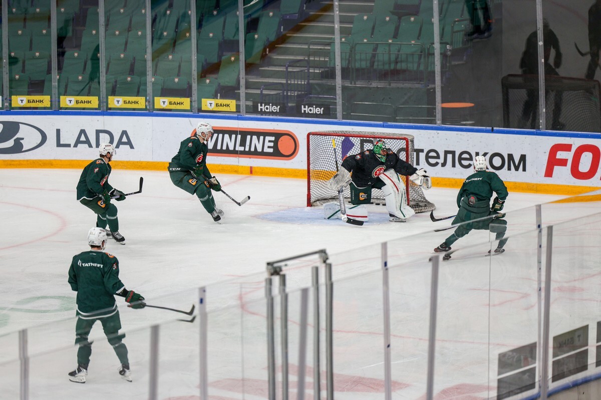 6. Само занятие длилось больше часа: подопечные Анвара Гатиятулина отрабатывали быстрый выход из своей зоны и вход в чужую, работали над большинством и подправлениями на пятачке. Уже традиционно для таких тренировок Гатиятулин просил игроков взвинчивать темп. Никаких поблажек, даже несмотря на болельщиков на трибунах